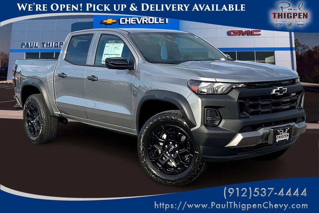 Paul Thigpen Chevrolet GMC 100 Semco Drive Vidalia, Georgia 30474 (844) 283-5935 www.paulthigpenchevy.com Paul Thigpen Chevrolet GMC has New car Preped this 2026 Chevrolet Colorado and comes with the following Preferred Equipment Group 0TR (Automatic Emergency Braking, Chevy Safety Assist, Following Distance Indicator, Forward Collision Alert, Front Pedestrian and Bicyclist Braking, IntelliBeam Automatic High Beam on/Off, and Lane Keep Assist with Lane Departure Warning), Trail Boss Convenience Package II (4-Spoke Wrapped Steering Wheel, 8-Way Power Driver Seat Adjuster, Driver and Front Passenger Heated Seats, Evotex Seat Trim, Heated Steering Wheel, Power Driver Lumbar Control Seat Adjuster, Remote Vehicle Starter System, and Wireless Phone Charging), 4WD, 1st and 2nd Row All-Weather Floor Liner, 3.42 Rear Axle Ratio, 4-Way Manual Passenger Seat Adjuster, 4-Wheel Disc Brakes, 6 Speakers, 6-Speaker Audio System Feature, 6-Way Manual Driver Seat Adjuster, ABS brakes, Air Conditioning, Alloy wheels, AM/FM radio: SiriusXM with 360L, Apple CarPlay/Android Auto, Auto High-beam Headlights, Automatic temperature control, Brake assist, Cargo Tie-Down Rings (set of 4), Cloth Seat Trim, Compass, Delay-off headlights, Driver door bin, Driver vanity mirror, Dual front impact airbags, Dual front side impact airbags, Electronic Stability Control, Emergency communication system: OnStar, Front anti-roll bar, Front Bucket Seats, Front Center Armrest, Front dual zone A/C, Front License Plate Kit, Front wheel independent suspension, Heated door mirrors, Illuminated entry, Low tire pressure warning, Navigation System, Occupant sensing airbag, Outside temperature display, Overhead airbag, Overhead console, Panic alarm, Passenger door bin, Passenger vanity mirror, Power door mirrors, Power steering, Power windows, Radio data system, Radio: 11.3 Diagonal Advanced Color LCD Display, Rear reading lights, Rear step bumper, Rear window defroster, Remote keyless entry, Security system, SiriusXM with 360L Trial Subscription, Speed control, Speed-sensing steering, Split folding rear seat, Steering Wheel Mounted Audio Controls, Steering wheel mounted audio controls, Tachometer, Tilt steering wheel, Traction control, Trip computer, Variably intermittent wipers, Wheels: 18 x 8.5 Black High Gloss Aluminum, Wheels: 20 x 9 High Gloss Black Aluminum, and Wireless Phone ProjectioN.