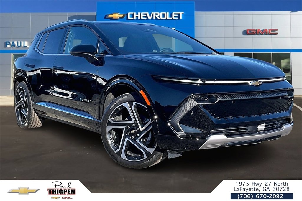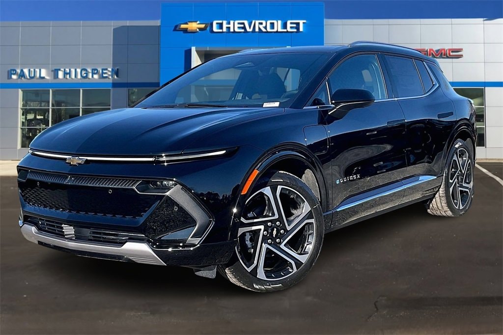 Black 2026 Chevrolet Equinox EV LT Electric Motor FWD Active Safety Package 2 (Enhanced Traffic Sign Recognition, HD Surround Vision, and Rear Pedestrian Alert), Comfort Package (Driver 8-Way Power Seat Adjuster, Heated Automatic Steering Wheel, Heated Driver and Front Passenger Seats Cushion and Seatback, Power Driver Lumbar Control, and Round Bottom Wrapped Steering Wheel), 19 Wheels, 4-Wheel Disc Brakes, 6 Speakers, 6-Speaker Audio System Feature, ABS brakes, Air Conditioning, Alloy wheels, AM/FM radio: SiriusXM with 360L, Ambient Multi-Color Interior Lighting, Auto High-beam Headlights, Auto-Dimming Inside Rear-View Mirror, Auto-dimming Rear-View mirror, Automatic temperature control, Autosense Hands-Free Programmable Power Liftgate, Brake assist, Bright Roof Rails, Bumpers: body-color, Compass, Delay-off headlights, Driver and Front Passenger Illuminated Visors, Driver door bin, Driver vanity mirror, Dual front impact airbags, Dual front side impact airbags, Electronic Stability Control, Emergency communication system: OnStar and Chevrolet connected services capable, Evotex Seat Trim, Four wheel independent suspension, Front anti-roll bar, Front Bucket Seats, Front Center Armrest, Front Passenger 4-Way Manual Seat Adjuster, Front reading lights, Fully automatic headlights, Headlamps-Center Lit Bar, Heated door mirrors, Heated front seats, Heated steering wheel, Hitch Guidance, Hitch View, Illuminated entry, Knee airbag, Low tire pressure warning, Manual Folding Heated Outside Mirrors, Navigation system: Google built-in compatibility (select service plan required, terms and limitations apply), Occupant sensing airbag, Outside temperature display, Overhead airbag, Overhead console, Panic alarm, Passenger door bin, Passenger vanity mirror, Power door mirrors, Power driver seat, Power Liftgate, Power steering, Power windows, Power Windows with Driver Express-Up, Radio: 17.7 Diagonal Advanced Color LCD Display, Rear anti-roll bar, Rear reading lights, Rear seat center armrest, Rear window defroster, Rear window wiper, Remote keyless entry, Security system, SiriusXM with 360L Trial Subscription, Speed control, Split folding rear seat, Spoiler, Steering wheel mounted audio controls, Telescoping steering wheel, Tilt steering wheel, Traction control, Trip computer, Turn signal indicator mirrors, Variably intermittent wipers, and Wireless Phone Charging.