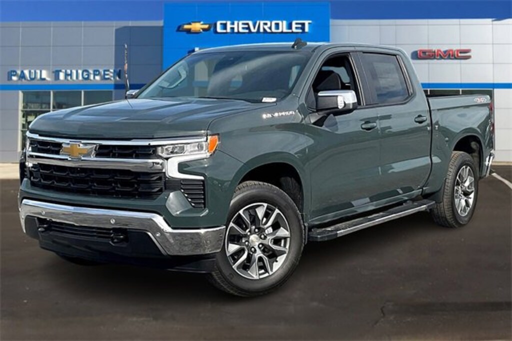 Cypress Gray 2026 Chevrolet Silverado 1500 LT EcoTec3 5.3L V8 4WD Convenience Package (10-Way Power Driver Seat w/Lumbar, 120-Volt Bed Mounted Power Outlet, 120-Volt Interior Power Outlet, Dual Rear USB Ports (Charge Only), Dual-Zone Automatic Climate Control, Heated Driver & Front Outboard Passenger Seats, Heated Steering Wheel, Keyless Open & Start, LED Cargo Area Lighting, Manual Tilt/Telescoping Steering Column, and Wrapped Steering Wheel), Convenience Package II (Hitch Guidance w/Hitch View, In-Vehicle Trailering System App, Power Sliding Rear Window w/Rear Defogger, and Universal Home Remote), High Capacity Suspension Package, Leather Package (Leather-Appointed Front Seat Trim), Preferred Equipment Group 1LT (12.3 Multicolor Reconfigurable Digital Display, All-Star Edition, Auto-Locking Rear Differential, Bluetooth® For Phone, Chrome Mirror Caps, Color-Keyed Carpeting Floor Covering, Deep-Tinted Glass, Electronic Cruise Control, EZ Lift Power Lock & Release Tailgate, Front Frame-Mounted Black Recovery Hooks, Front Rubberized Vinyl Floor Mats, HD Rear Vision Camera, Heated Power-Adjustable Outside Mirrors, Inside Rear-View Mirror w/Tilt, Integrated Trailer Brake Controller, OnStar Services Capable, Power Front Windows w/Driver Express Up/Down, Power Front Windows w/Passenger Express Down, Power Rear Windows w/Express Down, Rear 60/40 Folding Bench Seat (Folds Up), Rear Rubberized-Vinyl Floor Mats, SiriusXM w/360L Trial Subscription, Standard Tailgate, Steering Wheel Audio Controls, Teen Driver, Tire Pressure Monitoring System, and Wi-Fi Hot Spot Capable), Protection Package (Chevytec Spray-On Black Bedliner and Rear Wheelhouse Liners), Remote Start Package (Electric Rear-Window Defogger, Remote Vehicle Starter System, and Theft Deterrent System (Unauthorized Entry)), Safety Package (HD Surround Vision, Perimeter Lighting, Rear Cross Traffic Braking, Rear Pedestrian Alert, Trailer Camera Provisions, Trailer Side Blind Zone Alert, and Ultrasonic Front & Rear Park Assist), Standard Suspension Package, Trailering Package (Hitch Guidance), Up-Level Rear Seat w/Storage Package, 10-Speed Automatic, 4WD, Black Leather, 170 Amp Alternator, 2 USB Data Ports, 220 Amp Alternator, 3.23 Rear Axle Ratio, 4-Wheel Disc Brakes, 40/20/40 Front Split-Bench Seat, 6 Speakers, 6-Speaker Audio System, 6 Rectangular Chrome Tubular Assist Steps (LPO), ABS brakes, Air Conditioning, All-Weather Floor Liner (LPO), Alloy wheels, AM/FM radio: SiriusXM with 360L, Apple CarPlay/Android Auto, Auto High-beam Headlights, Automatic Emergency Braking, Automatic temperature control, Auxiliary External Transmission Oil Cooler, Bed View Camera, Brake assist, Bumpers: chrome, Cloth Seat Trim, Compass, Delay-off headlights, Driver door bin, Driver vanity mirror, Dual front impact airbags, Dual front side impact airbags, Electronic Stability Control, Electronic Transmission Range Selector Shifter, Emergency communication system: OnStar, External Engine Oil Cooler, Floor Mounted Center Console, Following Distance Indicator, Forward Collision Alert, Front anti-roll bar, Front Bucket Seats, Front Center Armrest w/Storage, Front dual zone A/C, Front License Plate Kit, Front Pedestrian Braking, Front reading lights, Front wheel independent suspension, Fully automatic headlights, Heated door mirrors, Heated front seats, Heated steering wheel, Illuminated entry, IntelliBeam Automatic High Beam On/Off, Lane Keep Assist w/Lane Departure Warning, Low tire pressure warning, Multi-Flex Tailgate, Occupant sensing airbag, Outside temperature display, Overhead airbag, Overhead console, Panic alarm, Passenger door bin, Passenger vanity mirror, Power door mirrors, Power driver seat, Power steering, Power windows, Premium audio system: Chevrolet Infotainment 3 Premium, Radio data system, Radio: Chevrolet Infotainment 3 Premium System, Rear reading lights, Rear step bumper, Rear window de Price includes: $1000 - Bonus Cash. Exp. 11/03