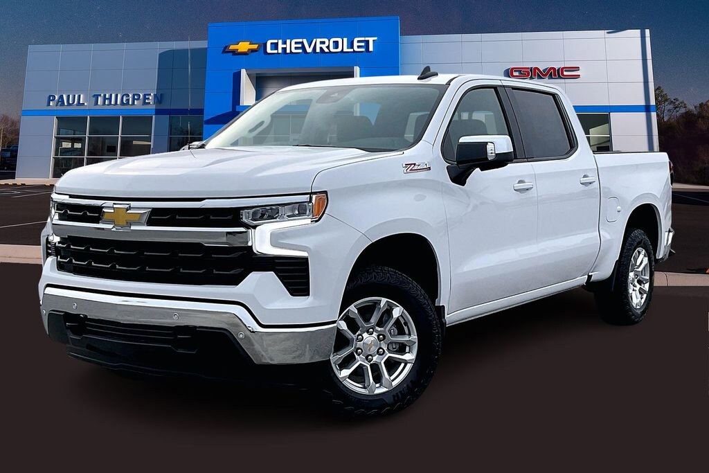 Paul Thigpen Chevrolet GMC 100 Semco Drive Vidalia, Georgia 30474 (844) 283-5935 www.paulthigpenchevy.com Paul Thigpen Chevrolet GMC has New car Preped this 2026 Chevrolet Silverado 1500 and comes with the following Convenience Package (10-Way Power Driver Seat with Lumbar, 120-Volt Bed Mounted Power Outlet, 120-Volt Interior Power Outlet, Dual Rear USB Ports (charge Only), Dual-Zone Automatic Climate Control, Heated Driver and Front Outboard Passenger Seats, Heated Steering Wheel, Keyless Open and Start, LED Cargo Area Lighting, Manual Tilt/Telescoping Steering Column, and Wrapped Steering Wheel), High Capacity Suspension Package, Preferred Equipment Group 1LT (12.3 Multicolor Reconfigurable Digital Display, 40/20/40 Front Split-Bench Seat, All-Star Edition, Auto-Locking Rear Differential, Bluetooth® For Phone, Chrome Mirror Caps, Cloth Seat Trim, Color-Keyed Carpeting Floor Covering, Deep-Tinted Glass, Electronic Cruise Control, EZ Lift Power Lock and Release Tailgate, Front Frame-Mounted Black Recovery Hooks, Front Rubberized Vinyl Floor Mats, HD Rear Vision Camera, Heated Power-Adjustable Outside Mirrors, Inside Rearview Mirror with Tilt, Integrated Trailer Brake Controller, OnStar Services Capable, Power Front Windows with Driver Express Up/Down, Power Front Windows with Passenger Express Down, Power Rear Windows with Express Down, Rear 60/40 Folding Bench Seat (folds Up), Rear Rubberized-Vinyl Floor Mats, SiriusXM with 360L Trial Subscription, Standard Tailgate, Steering Wheel Audio Controls, Teen Driver, Tire Pressure Monitoring System, Wheels: 17 x 8 Bright Silver Painted Aluminum, and Wi-Fi Hot Spot Capable), Protection Package (Chevytec Spray-on Black Bedliner and Rear Wheelhouse Liners), Remote Start Package (Electric Rear-Window Defogger, Remote Vehicle Starter System, and Theft Deterrent System (unauthorized Entry)), Standard Suspension Package, Trailering Package (Hitch Guidance), 10-Speed Automatic, 4WD, Black Cloth, 170 Amp Alternator, 220 Amp Alternator, 3.23 Rear Axle Ratio, 4-Wheel Disc Brakes, 6 Speakers, 6-Speaker Audio System, ABS brakes, Air Conditioning, Alloy wheels, AM/FM radio: SiriusXM with 360L, Apple CarPlay/Android Auto, Auto High-beam Headlights, Automatic Emergency Braking, Automatic temperature control, Auxiliary External Transmission Oil Cooler, Brake assist, Bumpers: chrome, Compass, Delay-off headlights, Driver door bin, Driver vanity mirror, Dual front impact airbags, Dual front side impact airbags, Electronic Stability Control, Emergency communication system: OnStar, External Engine Oil Cooler, Following Distance Indicator, Forward Collision Alert, Front anti-roll bar, Front Center Armrest w/Storage, Front dual zone A/C, Front Pedestrian Braking, Front reading lights, Front wheel independent suspension, Fully automatic headlights, Heated door mirrors, Heated front seats, Heated steering wheel, Illuminated entry, IntelliBeam Automatic High Beam on/Off, Lane Keep Assist with Lane Departure Warning, Low tire pressure warning, Occupant sensing airbag, Outside temperature display, Overhead airbag, Overhead console, Panic alarm, Passenger door bin, Passenger vanity mirror, Power door mirrors, Power driver seat, Power steering, Power windows, Premium audio system: Chevrolet Infotainment 3 Premium, Radio data system, Radio: Chevrolet Infotainment 3 Premium System, Rear reading lights, Rear step bumper, Rear window defroster, Remote keyless entry, Security system, Speed control, Speed-sensing steering, Split folding rear seat, Steering wheel mounted audio controls, Tachometer, Telescoping steering wheel, Tilt steering wheel, Traction control, Trip computer, Variably intermittent wipers, Voltmeter, and Wheels: 20 x 9 Painted AluminuM.