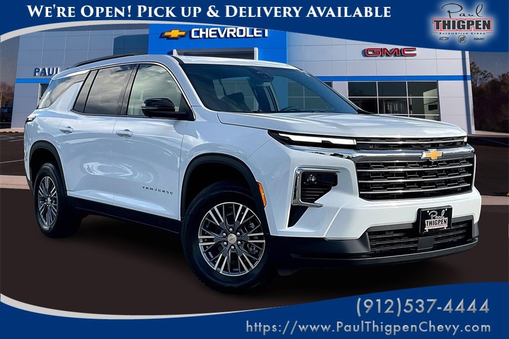 Paul Thigpen Chevrolet GMC 100 Semco Drive Vidalia, Georgia 30474 (844) 283-5935 www.paulthigpenchevy.com Paul Thigpen Chevrolet GMC has New car Preped this 2026 Chevrolet Traverse and comes with the following 3rd row seats: split-bench, 4-Way Manual Front Passenger Seat Adjuster, 4-Wheel Disc Brakes, 6 Speakers, 6-Speaker Audio System Feature, 8-Way Power Driver Seat Adjuster, ABS brakes, Air Conditioning, Alloy wheels, AM/FM radio: SiriusXM with 360L, Apple CarPlay/Android Auto, Auto High-beam Headlights, Automatic temperature control, Brake assist, Bumpers: body-color, Child-Seat-Sensing Airbag, Compass, Delay-off headlights, Driver door bin, Driver vanity mirror, Dual front impact airbags, Dual front side impact airbags, Electronic Stability Control, Emergency communication system: OnStar, Four wheel independent suspension, Front anti-roll bar, Front Bucket Seats, Front Center Armrest, Front dual zone A/C, Front reading lights, Fully automatic headlights, Heated door mirrors, Heated Driver & Front Passenger Seats, Heated front seats, Heated steering wheel, Illuminated entry, Low tire pressure warning, Navigation System, Occupant sensing airbag, Outside temperature display, Overhead airbag, Overhead console, Panic alarm, Passenger door bin, Passenger vanity mirror, Power door mirrors, Power driver seat, Power Liftgate, Power steering, Power windows, Premium Cloth Seat Trim, Radio data system, Radio: Audio System w/17.7 Diagonal Display, Rear air conditioning, Rear anti-roll bar, Rear reading lights, Rear window defroster, Rear window wiper, Remote keyless entry, Security system, SiriusXM w/360L Trial Subscription, Speed control, Speed-sensing steering, Spoiler, Steering wheel mounted audio controls, Tachometer, Telescoping steering wheel, Tilt steering wheel, Traction control, Trip computer, Turn signal indicator mirrors, Variably intermittent wipers, Voltmeter, and Wheels: 18 Grazen Metallic Machined-Face AluminuM.