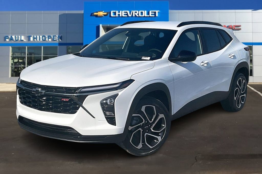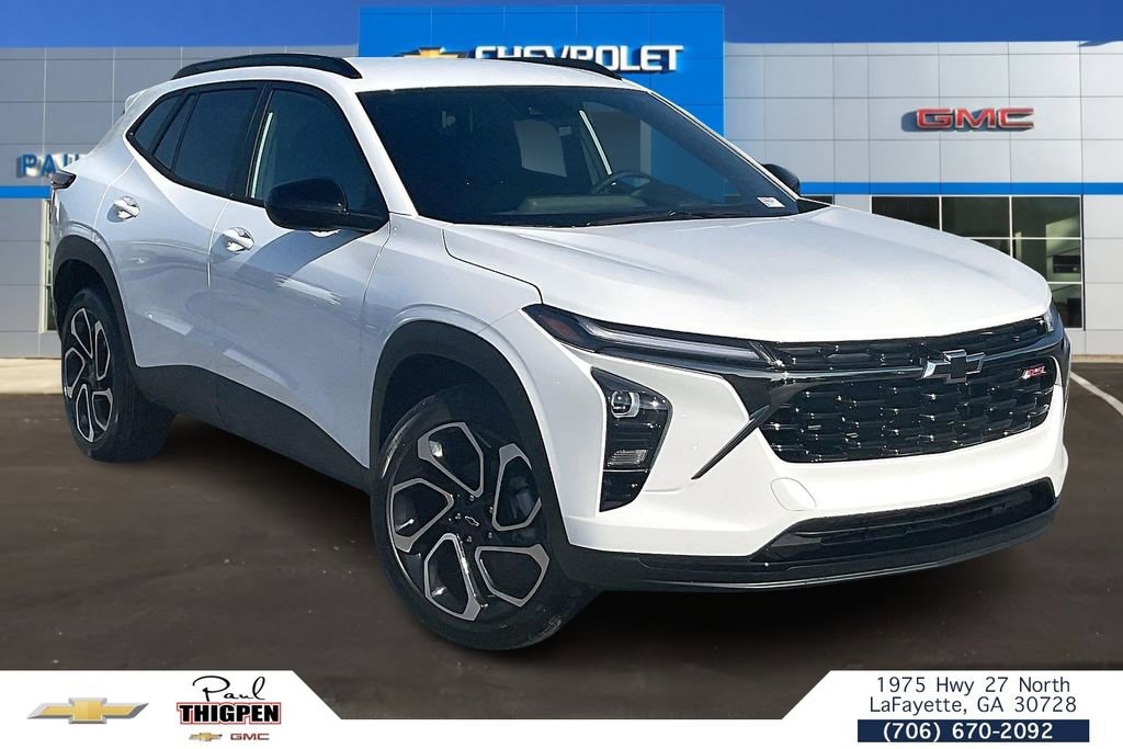 Summit White 2026 Chevrolet Trax 2RS ECOTEC 1.2L Turbo FWD Driver Confidence Package (Adaptive Cruise Control, Lane Change Alert with Side Blind Zone Alert, Rear Cross Traffic Alert, and Rear Park Assist), License Plate Front Mounting Package, Preferred Equipment Group 2RS, 2-Way Adjustable Front Head Restraints, 2-Way Power Driver Lumbar Seat Adjuster, 3.50 Final Drive Axle Ratio, 4-Way Manual Front Passenger Seat Adjuster, 4-Wheel Disc Brakes, 6 Speakers, 6-Speaker Audio System Feature, 8-Way Power Driver Seat Adjuster, ABS brakes, Air Conditioning, Alloy wheels, AM/FM radio: SiriusXM, Auto High-beam Headlights, Automatic temperature control, Brake assist, Bumpers: body-color, Compass, Delay-off headlights, Driver door bin, Driver vanity mirror, Dual front impact airbags, Dual front side impact airbags, Electronic Stability Control, Emergency communication system: OnStar One Essentials, Evotex Seat Trim, Exterior Parking Camera Rear, Front anti-roll bar, Front Bucket Seats, Front Center Armrest, Front reading lights, Front wheel independent suspension, Fully automatic headlights, Heated door mirrors, Heated Driver and Front Passenger Seats, Heated front seats, Heated steering wheel, Illuminated entry, Leather steering wheel, Low tire pressure warning, Occupant sensing airbag, Outside temperature display, Overhead airbag, Overhead console, Panic alarm, Passenger door bin, Passenger vanity mirror, Power door mirrors, Power driver seat, Power steering, Power windows, Premium audio system: Chevrolet Infotainment 3, Radio data system, Radio: AM/FM Stereo Audio System, Rear window defroster, Rear window wiper, Remote keyless entry, Security system, SiriusXM Trial Subscription, Speed control, Split folding rear seat, Spoiler, Sport steering wheel, Steering wheel mounted audio controls, Tachometer, Telescoping steering wheel, Tilt steering wheel, Traction control, Trip computer, Variably intermittent wipers, Wheels: 19 Black-Painted Machined Aluminum, and Wireless Apple CarPlay/Wireless Android Auto.