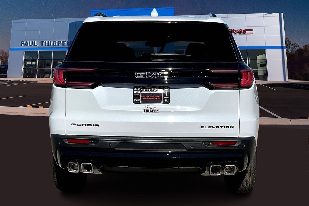 Paul Thigpen Chevrolet GMC 100 Semco Drive Vidalia, Georgia 30474 (844) 283-5935 www.paulthigpenchevy.com Paul Thigpen Chevrolet GMC has New car Preped this 2026 GMC Acadia and comes with the following Black Edition (Gloss Black Roof Rails and Wheels: 22 x 8.5 Gloss Black Aluminum), Elevation Premium Package (3-Channel Programmable Universal Home Remote, 6-Way Power Front Passenger Seat Adjuster, 7-Passenger Seating (2-2-3 Seating Configuration), CoreTec Seat Trim, and Front Passenger Power Lumbar Seat Adjuster), Luxury Package (8 Diagonal Head-Up Display, Heated Rear Outboard Seating Positions, Heated Wiper Park, and Laminated Acoustic Glass), 4D Sport Utility, 2.5L DOHC, 8-Speed Automatic, FWD, Navigation System, 12 Speakers, 18 x 7.5 Aluminum Wheels, 3.49 Final Drive Axle Ratio, 3rd row seats: split-bench, 4-Way Manual Front Passenger Seat Adjuster, 4-Wheel Disc Brakes, 8-Passenger Seating (2-3-3 Seating Configuration), 8-Way Power Driver Seat Adjuster, ABS brakes, Air Conditioning, Alloy wheels, AM/FM radio: SiriusXM with 360L, Apple CarPlay/Android Auto, Auto High-beam Headlights, Automatic temperature control, Bodyside moldings, Brake assist, Bumpers: body-color, Cloth Seat Trim, Compass, Delay-off headlights, Driver door bin, Driver vanity mirror, Dual front impact airbags, Dual front side impact airbags, Electronic Stability Control, Emergency communication system: OnStar Services capable, Exterior Parking Camera Rear, Four wheel independent suspension, Front anti-roll bar, Front Bucket Seats, Front Center Armrest, Front dual zone A/C, Front fog lights, Front reading lights, Fully automatic headlights, Heated door mirrors, Heated front seats, Heated steering wheel, Illuminated entry, Leather steering wheel, Low tire pressure warning, Occupant sensing airbag, Outside temperature display, Overhead airbag, Overhead console, Panic alarm, Passenger door bin, Passenger vanity mirror, Power door mirrors, Power driver seat, Power Liftgate, Power steering, Power windows, Radio data system, Rear air conditioning, Rear anti-roll bar, Rear reading lights, Rear seat center armrest, Rear side impact airbag, Rear window defroster, Rear window wiper, Remote keyless entry, Security system, Speed control, Speed-sensing steering, Split folding rear seat, Spoiler, Sport steering wheel, Steering wheel mounted audio controls, Tachometer, Telescoping steering wheel, Tilt steering wheel, Traction control, Trip computer, Turn signal indicator mirrors, Variably intermittent wipers, and VoltmeteR.