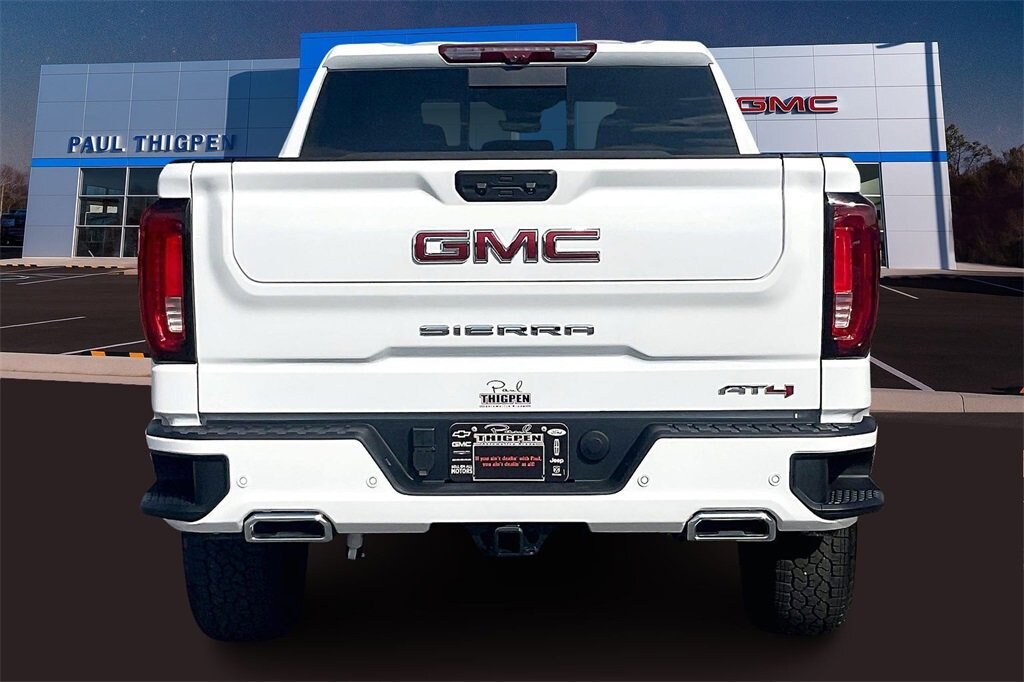 Paul Thigpen Chevrolet GMC 100 Semco Drive Vidalia, Georgia 30474 (844) 283-5935 www.paulthigpenchevy.com Paul Thigpen Chevrolet GMC has New car Preped this 2026 GMC Sierra 1500 and comes with the following AT4 Preferred Package (Power Sliding Rear Window w/Rear Defogger and Universal Home Remote), AT4 Premium Package (Off-Road High Clearance Step (LPO)), Preferred Equipment Group 4SB (120-Volt Bed Mounted Power Outlet, 120-Volt Interior Power Outlet, 2 Charge/Data USB Ports Inside Center Console, 2 Type-C Charge-Only Rear USB Ports, 2 USB Ports, 220 Amp Alternator, Auto-Locking Rear Differential, Black Chrome Grille Insert Bars, Color-Keyed Carpeting Floor Covering, Deep-Tinted Glass, Electric Rear-Window Defogger, Floor-Mounted Center Console, Front Prem Floor Liners w/Removable Carpet Insert, Front Rain-Sensing Wipers, HD Surround Vision, Heated 2nd Row Outboard Seats, Heated Driver & Front Outboard Passenger Seating, Heavy-Duty Air Filter, Hill Descent Control, Hitch View, In-Vehicle Trailering System App, Integrated Trailer Brake Controller, Keyless Open & Start, LED Cargo Area Lighting, OnStar Services Capable, Perimeter Lighting, Power Door Locks, Power Front Passenger Windows w/Express Up/Down, Power Front Windows w/Driver Express Up/Down, Power Rake & Telescoping Steering Column, Power Rear Windows w/Express Down, Premium Bose 7-Speaker Sound System, Push Button Start, Rear Cross Traffic Braking, Rear Pedestrian Detection, Rear Prem Floor Liners w/Removable Carpet Insert, Rear Wheelhouse Liners, Red Recovery Hooks, Remote Vehicle Starter System, SiriusXM w/360L Trial Subscription, Spray-On Pickup Bedliner w/GMC Logo, Steering Wheel Audio Controls, Theft Deterrent System (Unauthorized Entry), Trailer Camera Provisions, Trailer Side Blind Zone Alert, Ultrasonic Front & Rear Park Assist, Ventilated Driver & Front Passenger Seats, Wi-Fi Hotspot Capable, and Wireless Charging), Technology Package (Bed View Camera, Multicolor 15 Diagonal Head-Up Display, and Rear Camera Mirror), Trailering Package (Hitch Guidance), 10-Speed Automatic, 4WD, Jet Black With Kalahari Accents Leather, 10-Way Power Driver Seat Adjuster w/Lumbar, 10-Way Power Passenger Seat Adjuster w/Lumbar, 170 Amp Alternator, 3.23 Rear Axle Ratio, 4-Wheel Disc Brakes, 7 Speakers, ABS brakes, Air Conditioning, Alloy wheels, AM/FM radio: SiriusXM with 360L, Apple CarPlay/Android Auto, Auto High-beam Headlights, Auto-dimming door mirrors, Auto-dimming Rear-View mirror, Automatic Emergency Braking, Automatic temperature control, Auxiliary External Transmission Oil Cooler, Block heater, Brake assist, Buckle to Drive, Bumpers: body-color, Compass, Delay-off headlights, Driver door bin, Driver Memory, Driver vanity mirror, Dual Active Exhaust, Dual front impact airbags, Dual front side impact airbags, Electronic Stability Control, Emergency communication system: OnStar, External Engine Oil Cooling, Following Distance Indicator, Forward Collision Alert, Front anti-roll bar, Front Bucket Seats, Front Center Armrest, Front dual zone A/C, Front fog lights, Front License Plate Kit, Front Pedestrian Braking, Front reading lights, Front wheel independent suspension, Fully automatic headlights, Heated door mirrors, Heated front seats, Heated rear seats, Heated steering wheel, Illuminated entry, IntelliBeam Automatic High Beam On/Off, Lane Keep Assist w/Lane Departure Warning, Low tire pressure warning, Memory seat, Navigation System, Occupant sensing airbag, Off-Road Suspension, Outside temperature display, Overhead airbag, Overhead console, Panic alarm, Passenger door bin, Passenger vanity mirror, Perforated Front Leather Seat Trim, Power door mirrors, Power driver seat, Power passenger seat, Power steering, Power Sunroof, Power windows, Radio data system, Radio: Premium GMC Infotainment Audio System, Rain sensing wipers, Rear reading lights, Rear seat center armrest, Rear step bumper, Rear window defroster, Remote keyless en