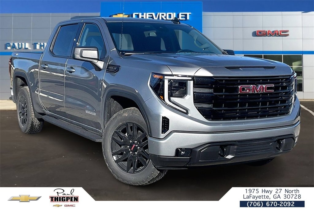 Sterling Metallic 2026 GMC Sierra 1500 Elevation EcoTec3 5.3L V8 4WD Cloth Rear Seat w/Storage Package, High Capacity Suspension Package, Trailering Package (Hitch Guidance), 10-Speed Automatic, 4WD, Cloth, 10-Way Power Driver Seat Adjuster w/Lumbar, 120-Volt Bed Mounted Power Outlet, 120-Volt Interior Power Outlet, 2 Charge/Data USB Ports, 2 Type-C Charge-Only Rear USB Ports, 220 Amp Alternator, 3.42 Rear Axle Ratio, 4-Way Manual Passenger Seat Adjuster, 4-Wheel Disc Brakes, 6 Speakers, 6-Speaker Audio System Feature, ABS brakes, Air Conditioning, Alloy wheels, AM/FM radio: SiriusXM with 360L, Apple CarPlay/Android Auto, Auto High-beam Headlights, Auto-Locking Rear Differential, Automatic Emergency Braking, Automatic temperature control, Body Color Header w/Gloss Black Mesh Grille Bars, Brake assist, Buckle to Drive, Bumpers: body-color, Cloth Seat Trim, Color-Keyed Carpeting Floor Covering, Compass, Deep-Tinted Glass, Delay-off headlights, Driver door bin, Driver vanity mirror, Dual front impact airbags, Dual front side impact airbags, Electric Rear-Window Defogger, Electronic Stability Control, Emergency communication system: OnStar, Following Distance Indicator, Forward Collision Alert, Front 40/20/40 Split-Bench Seat, Front anti-roll bar, Front Center Armrest w/Storage, Front dual zone A/C, Front fog lights, Front Frame-Mounted Black Recovery Hooks, Front Pedestrian Braking, Front reading lights, Front Rubberized-Vinyl Floor Mats, Front wheel independent suspension, Fully automatic headlights, Genuine wood dashboard insert, HD Rear Vision Camera, Heated door mirrors, Heated Driver & Front Outboard Passenger Seating, Heated front seats, Heated steering wheel, Illuminated entry, Integrated Trailer Brake Controller, IntelliBeam Automatic High Beam On/Off, Keyless Open & Start, Lane Keep Assist w/Lane Departure Warning, LED Cargo Area Lighting, Low tire pressure warning, Manual Tilt-Wheel & Telescoping Steering Column, Navigation System, Occupant sensing airbag, OnStar Services Capable, Outside temperature display, Overhead airbag, Overhead console, Panic alarm, Passenger door bin, Passenger vanity mirror, Power Door Locks, Power door mirrors, Power driver seat, Power Front Windows w/Driver Express Up/Down, Power Front Windows w/Passenger Express Down, Power Rear Windows w/Express Down, Power steering, Power windows, Push Button Start, Radio data system, Radio: Premium GMC Infotainment Audio System, Rear reading lights, Rear Rubberized-Vinyl Floor Mats, Rear seat center armrest, Rear step bumper, Rear window defroster, Remote keyless entry, Remote Vehicle Starter System, Security system, SiriusXM w/360L Trial Subscription, Speed control, Speed-sensing steering, Split folding rear seat, Steering Wheel Audio Controls, Steering wheel mounted audio controls, Tachometer, Telescoping steering wheel, Theft Deterrent System (Unauthorized Entry), Tilt steering wheel, Traction control, Trip computer, Variably intermittent wipers, Voltmeter, Wheels: 20 x 9 High Gloss Black Painted Aluminum, Wi-Fi Hotspot Capable, and Wireless Apple CarPlay/Wireless Android Auto. 10-Speed Automatic, 4WD, Cloth.* *Discounted price Includes our Paul Thigpen Chevrolet GMC La Fayette TRADE-IN ASSISTANCE discount of $2,000.00* * * *Discounted price Includes our Paul Thigpen Chevrolet GMC La Fayette FINANCE WITH US -N- SAVE discount of $1,250.00* * - All discounts & promo offers are reflected in in discounted pricing (see qualifying details below) - To qualify for Trade-In Assistance - customers must trade-in a 2010 or newer vehicle. Trade must be in working condition with current registration, taxes, inspections(safety or Gov) and misc. Fees. - To qualify for FINANCE WITH US -N- SAVE discount you must qualify for, and finance at least $10,000.00 of purchase balance through a dealer sourced Credit Union, bank, or financial institution. **Consumer Price includes: $1500 - Bonus Cash. Exp. 02/02/2026 $1750 - Purchase Allowance. Exp. 02/0