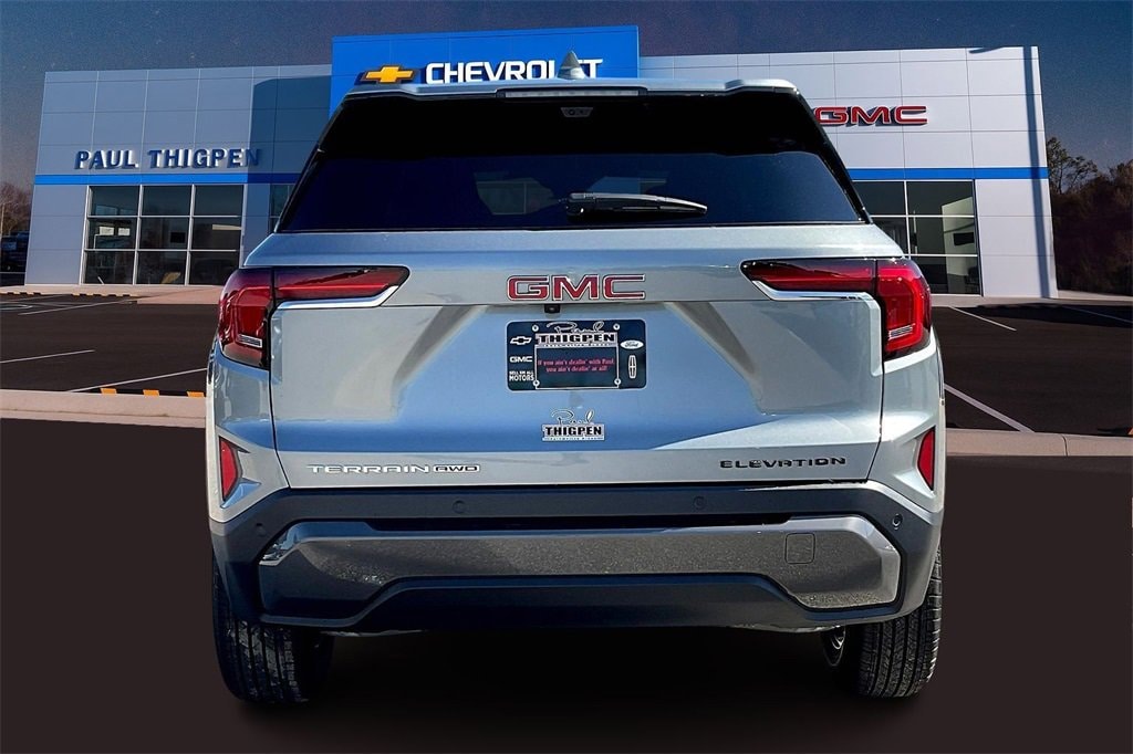 Paul Thigpen Chevrolet GMC 100 Semco Drive Vidalia, Georgia 30474 (844) 283-5935 www.paulthigpenchevy.com Paul Thigpen Chevrolet GMC has New car Preped this 2026 GMC Terrain and comes with the following AWD, 3.47 Final Drive Axle Ratio, 4-Wheel Disc Brakes, 6 Speakers, 6-Speaker Audio System Feature, ABS brakes, Air Conditioning, Alloy wheels, AM/FM radio: SiriusXM, Auto High-beam Headlights, Automatic temperature control, Brake assist, Bumpers: body-color, Compass, Delay-off headlights, Driver 6-Way Manual Seat Adjuster, Driver and Front Passenger Heated Seats, Driver door bin, Driver vanity mirror, Dual front impact airbags, Dual front side impact airbags, Electronic Stability Control, Emergency communication system: OnStar and GMC connected services capable, Four wheel independent suspension, Front anti-roll bar, Front Bucket Seats, Front Center Armrest, Front Passenger 4-Way Manual Seat Adjuster, Front reading lights, Fully automatic headlights, Heated door mirrors, Heated front seats, Heated steering wheel, Illuminated entry, Low tire pressure warning, Navigation System, Occupant sensing airbag, Outside temperature display, Overhead airbag, Panic alarm, Passenger door bin, Passenger vanity mirror, Power door mirrors, Power steering, Power windows, Premium Cloth Seat Trim, Radio data system, Radio: Premium GMC Infotainment System, Rear air conditioning, Rear anti-roll bar, Rear seat center armrest, Rear window defroster, Rear window wiper, Remote keyless entry, Security system, SiriusXM with 360L Trial Subscription, Speed control, Speed-sensing steering, Split folding rear seat, Spoiler, Sport steering wheel, Steering wheel mounted audio controls, Tachometer, Telescoping steering wheel, Tilt steering wheel, Traction control, Trip computer, Variably intermittent wipers, Wheels: 17 Grazen Metallic Machined Aluminum, and Wireless Apple CarPlay/Wireless Android AutO.24/28 City/Highway MPGSterling 2026 GMC Terrain Elevation AWD 8-Speed Automatic with Overdrive 1.5L DOHCAWD.