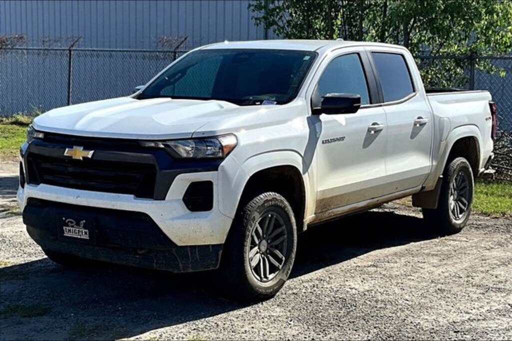 Vidalia Ford Lincoln 2607 E 1st St Vidalia, Georgia 30474 912-788-5318 Heavy-Duty Trailering Package (Integrated Trailer Brake Controller), Preferred Equipment Group 4LT (Automatic Emergency Braking, Chevy Safety Assist, Following Distance Indicator, Forward Collision Alert, Front Pedestrian & Bicyclist Braking, IntelliBeam Automatic High Beam On/Off, and Lane Keep Assist w/Lane Departure Warning), Ford Blue Advantage: Blue Certified Certified, 4WD, 1st & 2nd Row All-Weather Floor Liner (LPO), 220 Amp Generator, 3.42 Rear Axle Ratio, 4-Way Manual Passenger Seat Adjuster, 4-Wheel Disc Brakes, 6 Speakers, 6-Speaker Audio System Feature, 6-Way Manual Driver Seat Adjuster, ABS brakes, Air Conditioning, Alloy wheels, AM/FM radio: SiriusXM, Appearance Engine Cover, Apple CarPlay/Android Auto, Auto High-beam Headlights, Automatic Locking Rear Differential, Bedliner w/Integral Storage Compartments (LPO), Brake assist, Bumpers: body-color, Cloth Seat Trim, Compass, Delay-off headlights, Driver door bin, Driver vanity mirror, Dual front impact airbags, Dual front side impact airbags, Electronic Stability Control, Front anti-roll bar, Front Bucket Seats, Front Center Armrest, Front License Plate Kit, Front Passenger Seatback Map Pocket, Front reading lights, Front wheel independent suspension, Illuminated entry, Low tire pressure warning, Navigation System, Occupant sensing airbag, Outside temperature display, Overhead airbag, Overhead console, Panic alarm, Passenger door bin, Passenger vanity mirror, Power door mirrors, Power steering, Power windows, Radio data system, Radio: 11.3" Diagonal Advanced Color LCD Display, Rear reading lights, Rear step bumper, Remote keyless entry, Remote Start Kit w/2 Key Fobs (LPO), Security system, SiriusXM Radio, Speed-sensing steering, Split folding rear seat, Steering Wheel Mounted Audio Controls, Steering wheel mounted audio controls, Tachometer, Tilt steering wheel, Traction control, Trip computer, Variably intermittent wipers, Wheels: 17" x 8" Argent Metallic Aluminum, and Wireless Phone Projection. Summit White 2024 Chevrolet Colorado LT 4WD 2.7L I4 Turbocharged DOHC 16V LEV3-ULEV50 237hp 4WD, 1st & 2nd Row All-Weather Floor Liner (LPO), 220 Amp Generator, 3.42 Rear Axle Ratio, 4-Way Manual Passenger Seat Adjuster, 4-Wheel Disc Brakes, 6 Speakers, 6-Speaker Audio System Feature, 6-Way Manual Driver Seat Adjuster, ABS brakes, Air Conditioning, Alloy wheels, AM/FM radio: SiriusXM, Appearance Engine Cover, Apple CarPlay/Android Auto, Auto High-beam Headlights, Automatic Emergency Braking, Automatic Locking Rear Differential, Bedliner w/Integral Storage Compartments (LPO), Brake assist, Bumpers: body-color, Chevy Safety Assist, Cloth Seat Trim, Compass, Delay-off headlights, Driver door bin, Driver vanity mirror, Dual front impact airbags, Dual front side impact airbags, Electronic Stability Control, Following Distance Indicator, Forward Collision Alert, Front anti-roll bar, Front Bucket Seats, Front Center Armrest, Front License Plate Kit, Front Passenger Seatback Map Pocket, Front Pedestrian & Bicyclist Braking, Front reading lights, Front wheel independent suspension, Heavy-Duty Trailering Package, Illuminated entry, Integrated Trailer Brake Controller, IntelliBeam Automatic High Beam On/Off, Lane Keep Assist w/Lane Departure Warning, Low tire pressure warning, Navigation System, Occupant sensing airbag, Outside temperature display, Overhead airbag, Overhead console, Panic alarm, Passenger door bin, Passenger vanity mirror, Power door mirrors, Power steering, Power windows, Preferred Equipment Group 4LT, Radio data system, Radio: 11.3" Diagonal Advanced Color LCD Display, Rear reading lights, Rear step bumper, Remote keyless entry, Remote Start Kit w/2 Key Fobs (LPO), Security system, SiriusXM Radio, Speed-sensing steering, Split folding rear seat, Steering Wheel Mounted Audio Controls, Steering wheel mounted audio controls, Tachometer, Tilt steeri