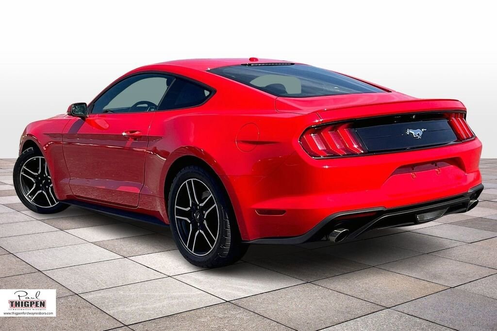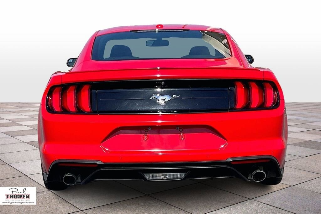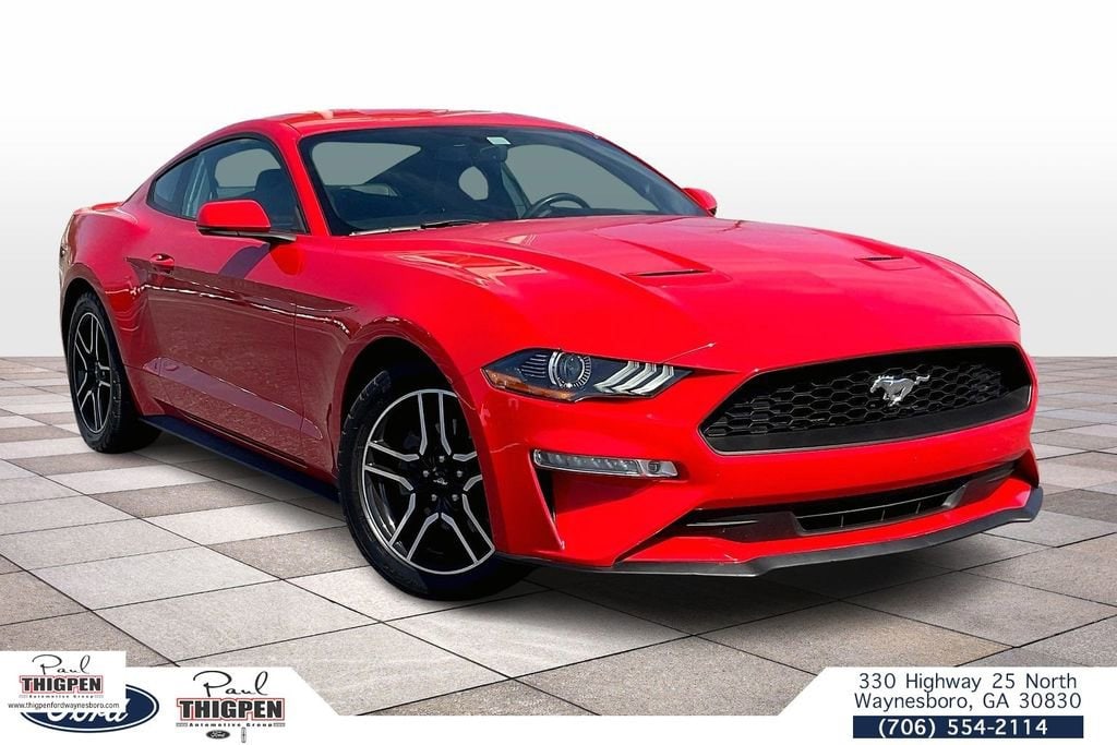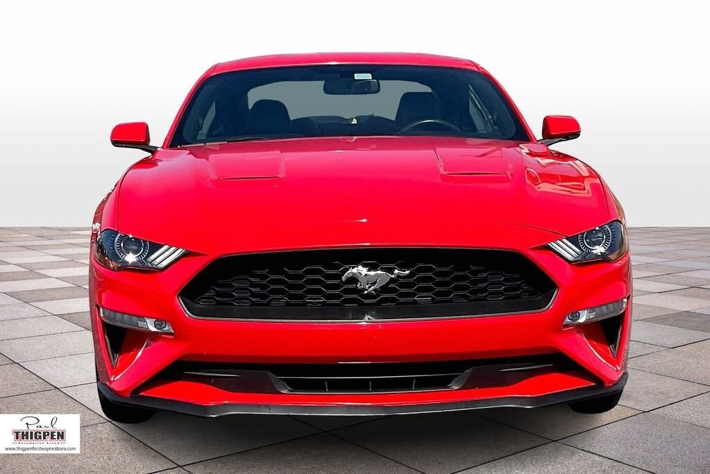 Certified. Race Red 2018 Ford Mustang EcoBoost Premium RWD 10-Speed Automatic EcoBoost 2.3L I4 GTDi DOHC Turbocharged VCT ABS brakes, Alloy wheels, Compass, Electronic Stability Control, Front dual zone A/C, Heated door mirrors, Heated front seats, Illuminated entry, Low tire pressure warning, Remote keyless entry, Traction control.