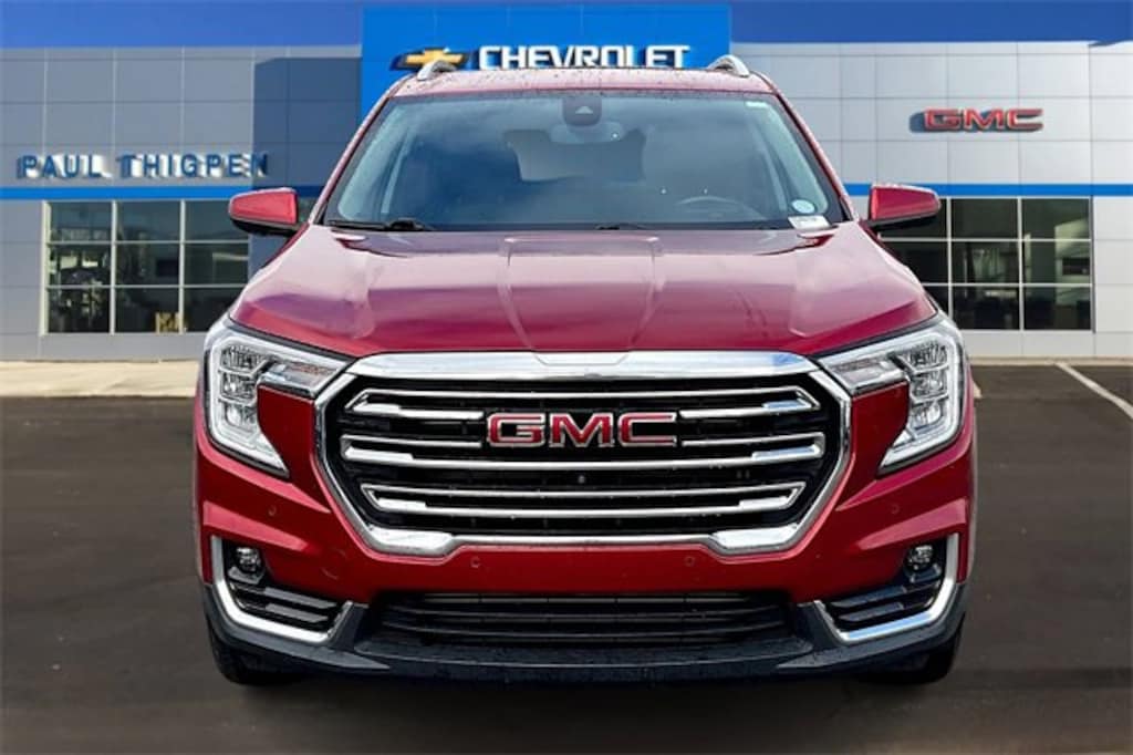 Preferred Equipment Group 4SA, Tech Package (Front & Rear Park Assist, HD Surround Vision, and Head-Up Display), Terrain Pro Safety Plus (Adaptive Cruise Control, Rear Park Assist, and Safety Alert Seat), AWD, 2 USB Data Ports, 2 USB Data Ports w/SD Card Reader, 3.47 Axle Ratio, 4-Wheel Disc Brakes, 6 Speakers, 6-Speaker Audio System Feature, 6-Way Power Front Passenger Seat, 8-Way Power Driver Seat Adjuster, ABS brakes, Air Conditioning, Alloy wheels, AM/FM radio: SiriusXM, Auto High-beam Headlights, Auto-dimming Rear-View mirror, Automatic temperature control, Bluetooth® For Phone, Brake assist, Bumpers: body-color, Compass, Delay-off headlights, Driver & Front Passenger Heated Seats, Driver door bin, Driver vanity mirror, Dual front impact airbags, Dual front side impact airbags, Electronic Stability Control, Emergency communication system: OnStar and GMC connected services capable, Four wheel independent suspension, Front anti-roll bar, Front Bucket Seats, Front Center Armrest, Front dual zone A/C, Front fog lights, Front Passenger 2-Way Power Lumbar, Front reading lights, Fully automatic headlights, Garage door transmitter, Heated door mirrors, Heated front seats, Heated steering wheel, Illuminated entry, Lane Change Alert w/Side Blind Zone Alert, Lane Departure Warning System, Low tire pressure warning, Memory seat, Occupant sensing airbag, Outside temperature display, Overhead airbag, Overhead console, Panic alarm, Passenger door bin, Passenger vanity mirror, Perforated Leather-Appointed Seat Trim, Power door mirrors, Power Driver Lumbar Control, Power driver seat, Power Liftgate, Power passenger seat, Power steering, Power windows, Radio data system, Radio: GMC Infotainment Audio System w/8 Display, Rear anti-roll bar, Rear Cross-Traffic Alert, Rear seat center armrest, Rear window defroster, Rear window wiper, Remote keyless entry, Roof rack: rails only, Security system, SiriusXM Radio, Speed control, Speed-sensing steering, Split folding rear seat, Spoiler, Steering wheel mounted audio controls, Tachometer, Telescoping steering wheel, Tilt steering wheel, Traction control, Trip computer, Turn signal indicator mirrors, Variably intermittent wipers, Wheels: 18 x 7 Silver Painted Aluminum, and Wireless Apple CarPlay/Wireless Android Auto.