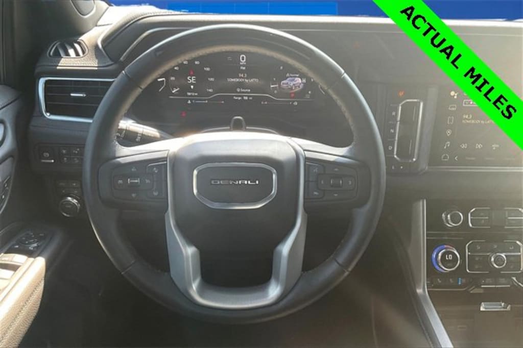Advanced Security Package (Glass Breakage Sensor, Theft-Deterrent Alarm System, Vehicle Inclination Sensor, and Vehicle Interior Movement Sensor), Advanced Technology Package (Enhanced Automatic Parking Assist, Inside Rearview Auto-Dimming Rear Camera Mirror, Rear Camera Mirror Washer, Reverse Automatic Braking, and Super Cruise), License Plate Front Mounting Package, Max Trailering Package, Preferred Equipment Group 5SA (12-Way Power Seat Adjusters, 15 Diagonal Multi-Color Head-Up Display, 2 Presets For Outside Rearview Mirrors, 3rd Row 60/40 Power-Folding Split-Bench Seat, Adaptive Cruise Control, Bose 14-Speaker Surround w/CenterPoint, Bright Front & Rear Door Sill Plates, Chrome Door Handles w/Body-Color Strip, Dual Exhaust System, Enhanced Automatic Emergency Braking, Floor Console, Galvano Bodyside Moldings, Hands-Free Power Programmable Rear Liftgate, HD Surround Vision, Heated 2nd Row Outboard Position Seats, Heated Driver & Front Passenger Seats, Heated Steering Wheel, Hill Descent Control, Inside Rear-View Auto-Dimming Mirror, Outside Heated Power-Adjustable Mirrors, Perforated Heated & Ventilated Dr & Frt Pass Seats, Power Release 2nd Row Bucket Seats, Power Tilt & Telescopic Steering Column, Rear Pedestrian Alert, Safety Alert Seat, Universal Home Remote, and Wireless Charging), 4WD, 14 Speakers, 3.23 Rear Axle Ratio, 3rd row seats: split-bench, 4-Wheel Disc Brakes, ABS brakes, Adaptive suspension, Air Conditioning, All-Weather Cargo Mat (LPO), Alloy wheels, AM/FM radio: SiriusXM with 360L, AM/FM Stereo, Apple CarPlay/Android Auto, Auto High-beam Headlights, Auto-dimming door mirrors, Auto-dimming Rear-View mirror, Auto-leveling suspension, Automatic Emergency Braking, Automatic temperature control, Bodyside moldings, Brake assist, Bumpers: body-color, Compass, Delay-off headlights, Driver door bin, Driver vanity mirror, Dual front impact airbags, Dual front side impact airbags, Electronic Stability Control, Emergency communication system: OnStar and GMC connected services capable, Extra Capacity Cooling System, Following Distance Indicator, Forward Collision Alert, Four wheel independent suspension, Front & Rear Park Assist, Front anti-roll bar, Front Bucket Seats, Front Center Armrest, Front dual zone A/C, Front fog lights, Front Pedestrian Braking, Front reading lights, Fully automatic headlights, Garage door transmitter, Heads-Up Display, Heated door mirrors, Heated front seats, Heated rear seats, Heated steering wheel, Hitch View, Illuminated entry, Integrated Trailer Brake Controller, IntelliBeam Automatic High Beam On/Off, Lane Change Alert w/Side Blind Zone Alert, Lane Keep Assist w/Lane Departure Warning, Low tire pressure warning, Magnetic Ride Control Suspension, Memory seat, Navigation System, Occupant sensing airbag, Outside temperature display, Overhead airbag, Overhead console, Panic alarm, Passenger door bin, Passenger vanity mirror, Perforated Leather Seating Surfaces, Power door mirrors, Power driver seat, Power Liftgate, Power passenger seat, Power steering, Power windows, Rain sensing wipers, Rear air conditioning, Rear anti-roll bar, Rear Cross Traffic Alert, Rear reading lights, Rear Seat Media System, Rear window defroster, Rear window wiper, Remote keyless entry, Roof rack: rails only, Security system, SiriusXM w/360L, Smart Trailer Integration Indicator, Speed control, Speed-sensing steering, Split folding rear seat, Spoiler, Steering wheel memory, Steering wheel mounted audio controls, Tachometer, Telescoping steering wheel, Tilt steering wheel, Traction control, Trailer Side Blind Zone Alert, Trip computer, Turn signal indicator mirrors, Variably intermittent wipers, Ventilated front seats, Vertical Cargo Net (LPO), Voltmeter, and Wheels: 20 x 9 6-Spoke Polished Aluminum.
