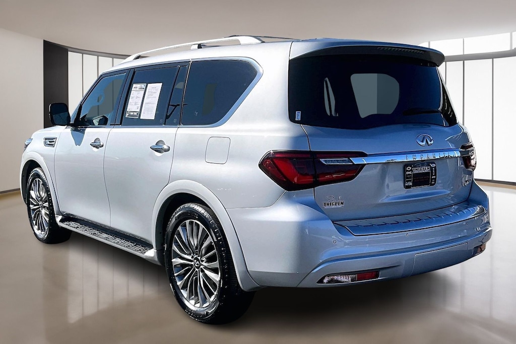 Powered by a robust 5.6L V8 engine and paired with a smooth 7-speed automatic transmission, the QX80 Sensory delivers impressive power and efficiency, with a comfortable 20 MPG on the highway. The advanced all-wheel-drive system ensures confident handling and control, no matter the road conditions.
