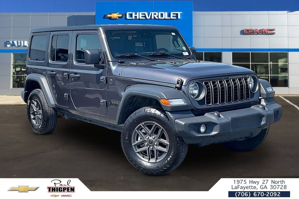 Recent Arrival!CARFAX One-Owner. Clean CARFAX. Adaptive Cruise Control, Android Auto, Apple Carplay, Backup Camera, Wrangler Sport S, 4D Sport Utility, 2.0L I4 DOHC, 8-Speed Automatic, 4WD, Granite Crystal Metallic Clearcoat, Black Cloth.Quick Order Package 22S Sport S (Advanced Brake Assist, Automatic Headlamps, Corning Gorilla Glass, Deep Tint Sunscreen Windows, Enhanced Adaptive Cruise Control, Full Speed Forward Collision Warning Plus, Power Heated Mirrors, Premium Wrapped Steering Wheel, Security Alarm, Sun Visors w/Illuminated Vanity Mirrors, and Wheels: 17 x 7.5 Gray), Wrangler Sport S, 4D Sport Utility, 2.0L I4 DOHC, 8-Speed Automatic, 4WD, Granite Crystal Metallic Clearcoat, Black Cloth, 110 MPH Vehicle Max Speed Calibration, 3.45 Overall Top Gear Ratio, 4-Wheel Disc Brakes, 8 Speakers, ABS brakes, Air Conditioning, AM/FM radio: SiriusXM, Apple CarPlay/Android Auto, Aux Battery, Black 3-Piece Hard Top, Brake assist, Cloth Low-Back Bucket Seats, Compass, Delay-off headlights, Driver door bin, Driver vanity mirror, Dual front impact airbags, Dual front side impact airbags, Electronic Stability Control, Freedom Panel Storage Bag, Front anti-roll bar, Front Bucket Seats, Front Center Armrest w/Storage, Front fog lights, Front reading lights, Illuminated entry, Integrated roll-over protection, Low tire pressure warning, Non-Lock Fuel Cap w/o Discriminator, Normal Duty Suspension, Occupant sensing airbag, Outside temperature display, Overhead airbag, Panic alarm, ParkView Rear Back-Up Camera, Passenger door bin, Passenger vanity mirror, Power steering, Power windows, Radio data system, Radio: Uconnect 5 w/12.3 Display, Rear anti-roll bar, Rear reading lights, Rear Window Defroster, Rear Window Wiper/Washer, Remote keyless entry, Speed control, Split folding rear seat, Steering wheel mounted audio controls, Stop-Start Dual Battery System, Tachometer, Telescoping steering wheel, Tilt steering wheel, Traction control, Trip computer, Variably intermittent wipers, and Wheels: 17 x 7.5 Black Steel Styled.* *Discounted price Includes our Paul Thigpen Chevrolet GMC La Fayette TRADE-IN ASSISTANCE discount of $2,000.00* * * *Discounted price Includes our Paul Thigpen Chevrolet GMC La Fayette FINANCE WITH US -N- SAVE discount of $1,250.00* * - All discounts & promo offers are reflected in in discounted pricing (see qualifying details below) - To qualify for Trade-In Assistance - customers must trade-in a 2010 or newer vehicle. Trade must be in working condition with current registration, taxes, inspections(safety or Gov) and misc. Fees. - To qualify for FINANCE WITH US -N- SAVE discount you must qualify for, and finance at least $10,000.00 of purchase balance through a dealer sourced Credit Union, bank, or financial institution. **Consumer must refer to this ad to receive discounted pricing**Employees and their family members are excluded from special pricing discounts**