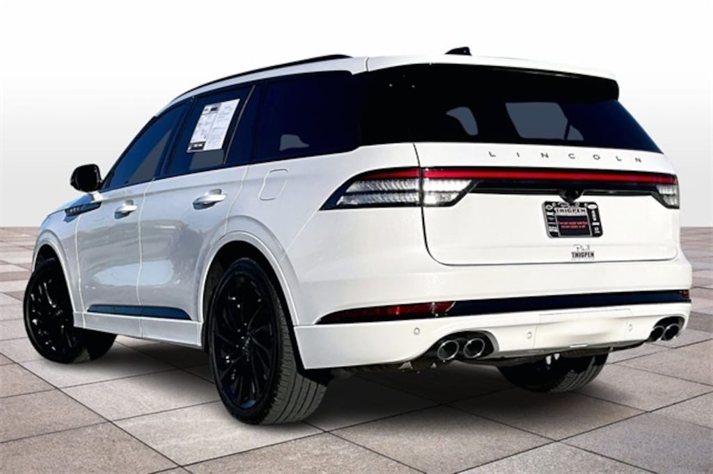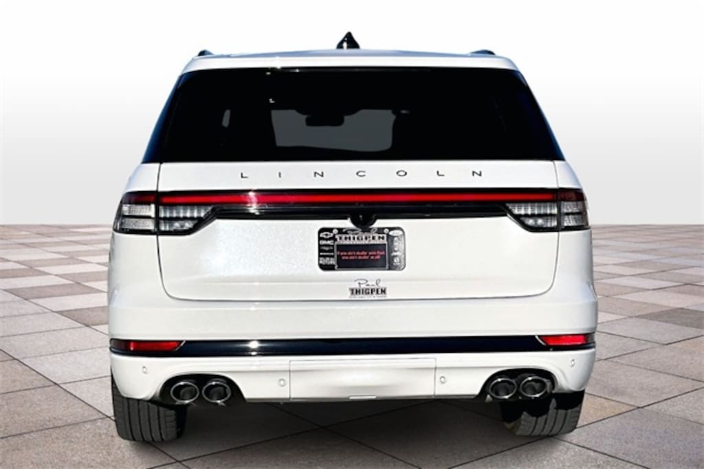White Metallic 2025 Lincoln Aviator Reserve RWD 3.0L V6 12.3" HD Color Driver Cluster, 13.2" Color Touchscreen, 3rd Row Seating, 5G WiFi Hotspot Telematics, Adaptive Ride Package, Adaptive Ride Suspension, Auto LED Headlights, Backup Camera, Lane Keeping System, Leather Seats, Memory Package, Multi Zone Climate Control, Multimedia Package, Panoramic Sunroof/Moonroof, Power Mirror Package, Power Package, Premium Audio Package, Premium Sound Package, Rear Climate Package, Third Row Seating, Wireless Charging, 4D Sport Utility, 3.0L V6, 10-Speed Automatic, RWD, 14 Speakers, 3rd row seats: split-bench, 4-Wheel Disc Brakes, 40/Mini Console/40 Dual Captain's Chairs, ABS brakes, Adaptive Dynamic Bending Lighting, Adaptive Pixel LED Headlamps, Adaptive suspension, Advanced Heads-Up Display, All-Weather 1st & 2nd Row Floor Liners, AM/FM radio: SiriusXM, Apple CarPlay/Android Auto, Audio memory, Auto Air Refresh, Auto High-beam Headlights, Auto-dimming door mirrors, Auto-dimming Rear-View mirror, Automatic temperature control, Black Exterior Elements, Body-Color Exterior Elements, Brake assist, Compass, Delay-off headlights, Electronic Stability Control, Emergency communication system: 911 Assist, Equipment Group 200A, Four wheel independent suspension, Front Center Armrest, Front dual zone A/C, Fully automatic headlights, Garage door transmitter, Genuine wood console insert, Genuine wood dashboard insert, Heads-Up Display, Heated door mirrors, Heated front seats, Heated steering wheel, HVAC memory, Illuminated entry, Illuminated Lincoln Star in Grille, Illumination Package, Jet Appearance Package, Leather steering wheel, Lincoln BlueCruise Equipped (4-Years Included), Lincoln Digital Experience, Low tire pressure warning, Memory seat, Navigation system: Connected Navigation (1-year trial), Outside temperature display, Panic alarm, Power Liftgate, Power moonroof: Panoramic Vista Roof, Power passenger seat, Premium Lthr Heated/Ventilated Fnt Captain's Chairs, Radio data system, Radio: Revel Audio System w/14 Speakers, Rain sensing wipers, Rear air conditioning, Rear audio controls, Rear dual zone A/C, Rear reading lights, Rear window wiper, Remote keyless entry, Security system, SiriusXM, Speed Dependent Lighting, Speed-Sensitive Wipers, Split folding rear seat, Spoiler, Steering wheel memory, Steering wheel mounted A/C controls, Steering wheel mounted audio controls, Telescoping steering wheel, Tilt steering wheel, Traction control, Trip computer, Turn signal indicator mirrors, Ventilated front seats, Wheels: 22" Black Aluminum w/Adaptive Suspension, Wireless Charging Pad.
